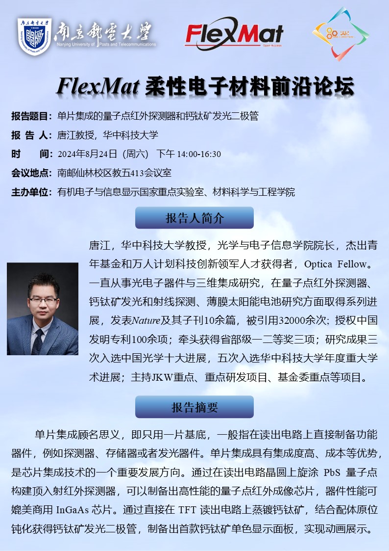 FlexMat柔性电子材料前沿论坛:华中科技大学 唐江教授