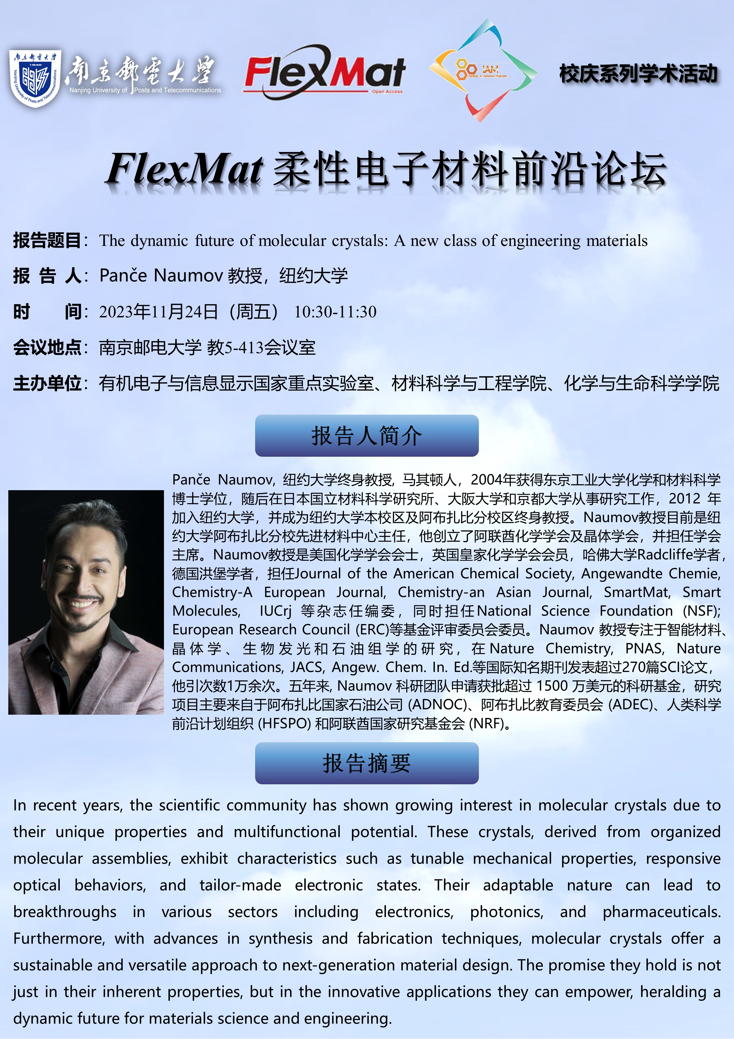 FlexMat柔性电子材料前沿论坛:纽约大学 Panče Naumov 教授